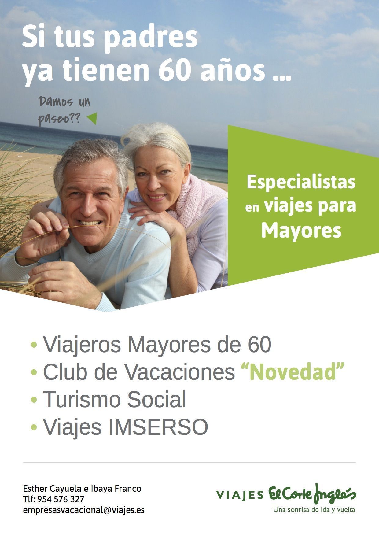 Viajes El Corte Inglés pone a disposición de los padres de los afiliados del Sppme-A condiciones especiales para los viajes a mayores de 60 (Imserso).