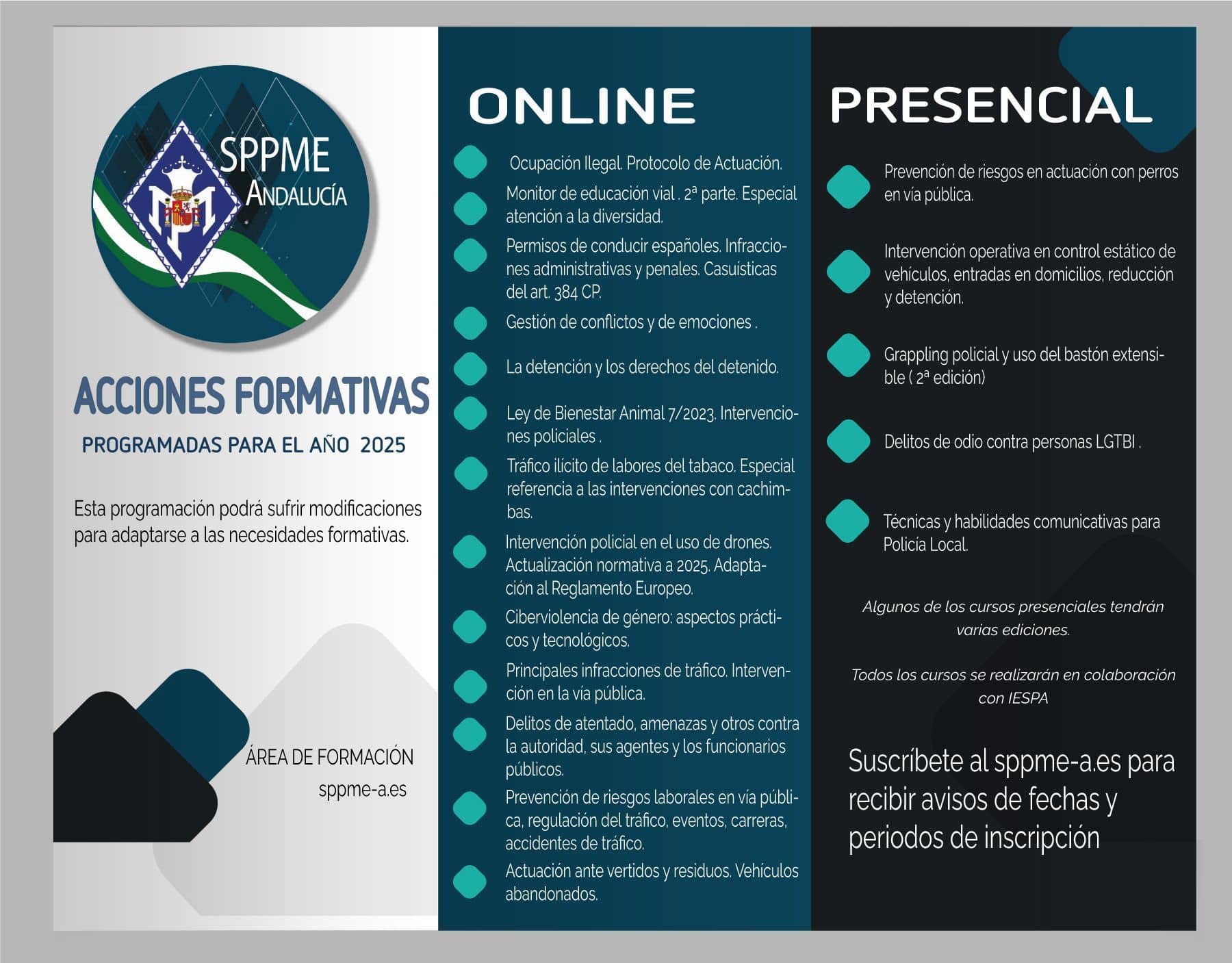 Las Acciones Formativas se impartirán exclusivamente para afiliados al SPPME-A.